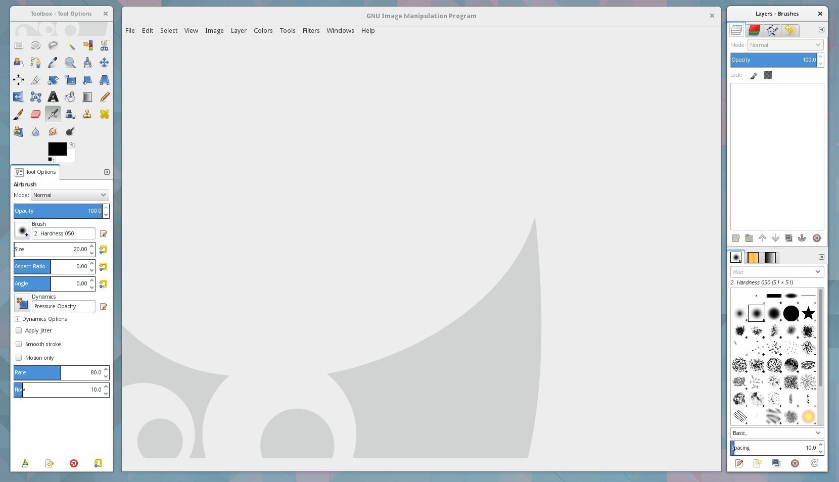 Gimp имеет оригинальную многопанельную систему управления с удобно рассортированными по функциональному предназначению инструментами.