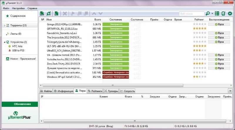uTorrent — закачка контента из торрент-сети на крейсерской скорости