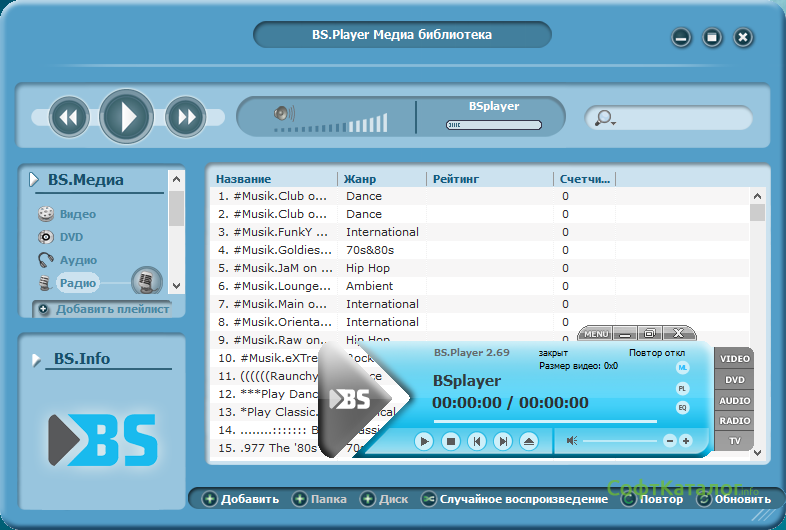 С самого начала программное обеспечение BSplayer зарекомендовало себя как удобнейший и довольно функциональный инструмент, предназначенный для комфортного просмотра видеофайлов (к примеру, как и RealPlayer) и прослушивания музыки. Плеер воспроизводит без проблем любой известный формат без искажения изображения или звука и имеет небольшие требования к системной составляющей персонального компьютера.