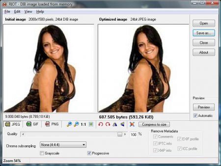 Порой для различных целей необходимо выполнить оптимизацию изображения и уберечь при этом его качество. С этой задачей великолепно справляется приложение RIOT. Освоить его элементарно просто даже для неопытного пользователя за счёт незахламлённого разнообразными инструментами интерфейса. Работать можно с файлами большинства форматов, а сохранять лишь в некоторые: PNG, JPEG и GIF.