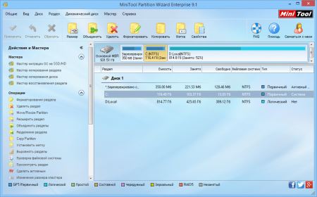 Partition Wizard Free Edition – это высококачественный и надёжнейший менеджер, нацеленный на продуктивную работу с винчестерами, которые имеются на ноутбуке или же персональном компьютере. Он предоставляет пользователям колоссальное количество функций для безопасного управления HDD и имеет отличный незахламлённый интерфейс, способствующий быстрому освоению софта.
