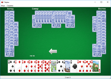 Компьютерная игра Червы устанавливается обычно на ПК вместе с ОС Windows, но если на вашем устройстве она почему-то отсутствует, то вы можете воспользоваться расположенной на этой станице ссылкой. Как уже понятно из названия видеоигры, ваша основная задача собрать как можно меньше карт данной масти, заработав минимум очков для того, чтобы одержать победу над противниками.