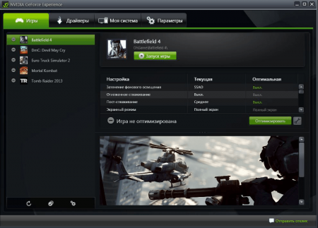 Дистрибутив NVIDIA GeForce Experience имеет довольно интересный интерфейс, управлять им весьма просто за счёт удобного размещения всех функций. Сделав всего пару кликов, можете запускать видеоигру и наслаждаться её плавным воспроизведением. Выполняется это при помощи соединения с центром обработки данных.