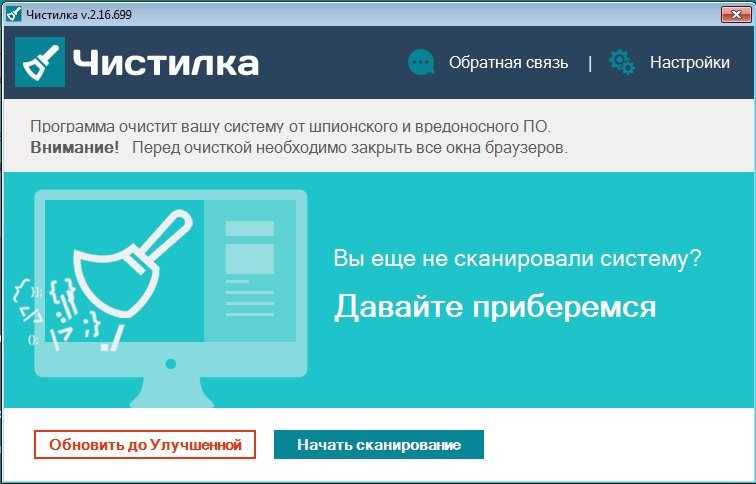 Приложение Чистилка практически не займёт места на вашем компьютере и поможет избавиться от некоторых проблем, в число которых входят проделки разнообразных вредоносных программ, подменяющих содержимое web-страниц в обозревателе, изменяющих стартовую станицу и многое другое. Этот продукт не является антивирусом, но может быть использован параллельно с ним.