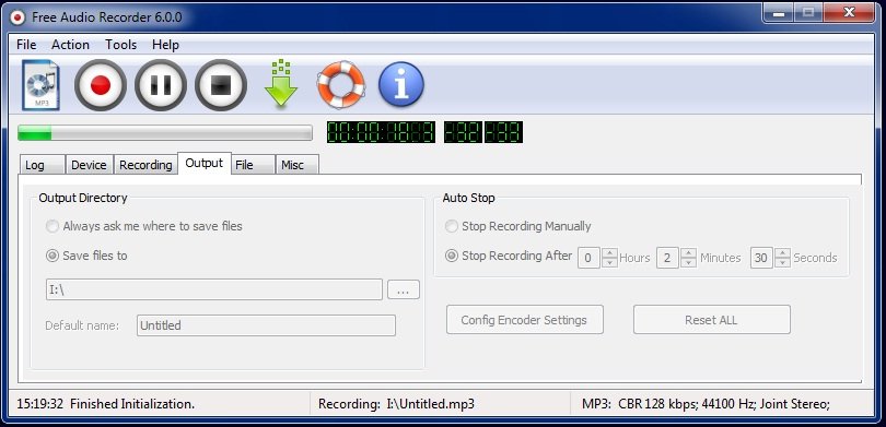 После записи звука с помощью Free Audio Recorder вы сможете получить файлы следующих форматов на выбор: WMA, OGG, WAV, а также MP3. Воспользовавшись журналом событий, можно проследить какие действия были проделаны. Также здесь доступна диагностика устройств, которые воспроизводят аудиоданные.