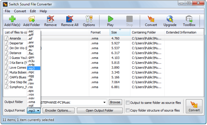 Switch Sound File Converter позиционируется как полноценный продукт, который предназначен для быстрой конвертации аудиофайлов во множество форматов, как и аналогичное программное обеспечение Total Audio Converter. Приложение оформлено довольно просто, но при этом полностью укомплектовано наиболее важными инструментами для качественного преобразования звуковых файлов.