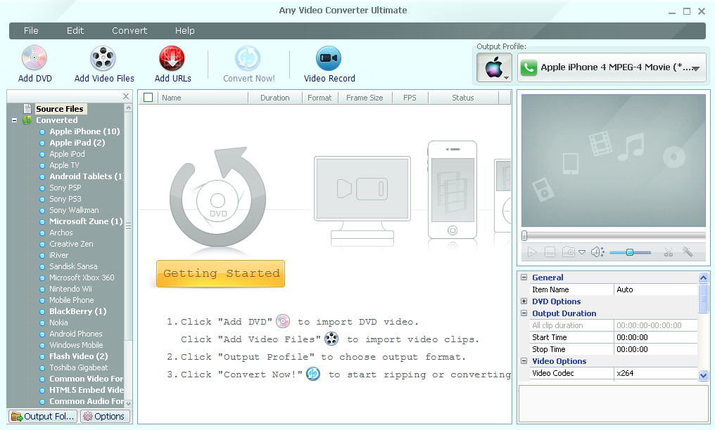 Any Video Converter Ultimate является качественным приложением, используя которое можно конвертировать видеоролики в огромное количество видеоформатов (XviD, VOB, DVD, MOV, AVI) получая на выходе файл достойного качества. Программное обеспечение окажется полезным, если вы желаете преобразовать ролик для просмотра на смартфоне, в каком-либо проигрывателе, на планшете и иных устройствах.