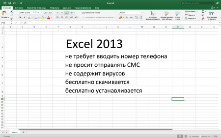 | check | Официальный дистрибутив Microsoft Excel | check | |||