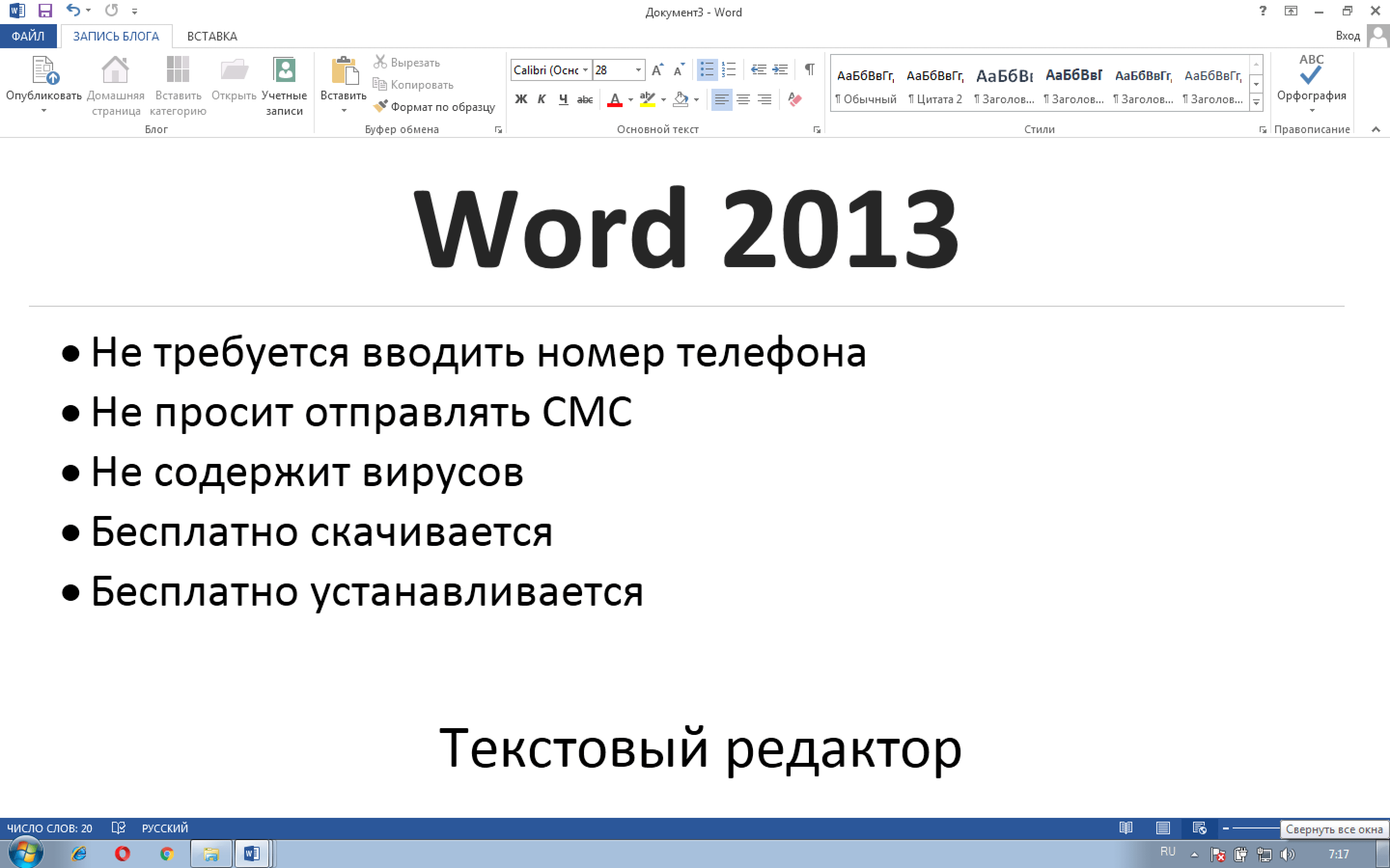 Проект Microsoft Word считается, пожалуй, самой известной программой, которая позволяет подготавливать документы в формате текста, а также просматривать их и редактировать уже готовые. С этим продуктом знакомы практически все пользователи, потому что он довольно удобен для работы с текстовым материалом, к тому же его панель инструментов наделена колоссальным количеством всевозможных функций. Файлы, созданные в приложении, имеют расширение «.doc» и открываются даже в стороннем софте, например в различных читалках.