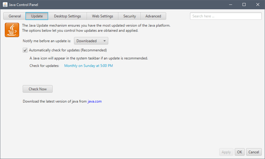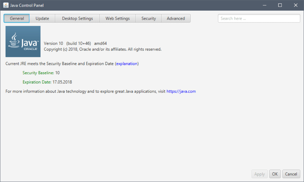Java - отдельный язык программирования, а также специальная платформа, предназначенная для поддержки работы большого количества разнообразных приложений. Разработчики компании Sun Microsystems выпустили эту платформу вычислений в 1995 году. В настоящее время этот софт для Windows 10 с разрядностью 32 bit можно скачать с нашего веб-ресурса. Как известно, многие приложения и сайты привязаны к Java. Поэтому если этого софта нет, то веб-ресурсы не смогут работать в полной мере. Сейчас Java есть повсюду, без этой платформы не обойтись различным консолям, суперкомпьютерам, мобильным телефонам и другим портативным гаджетам. Сегодня не составит большого труда скачать javascript для windows 10 по надежной ссылке. К тому же, если на вашем ПК установлена другая операционная система, то нет никаких проблем, потому что скрипт функционирует со всеми операционками среды Windows. Если в вашем распоряжении имеется какой-либо гаджет, то нужно заранее удостовериться в том, что Java уже инсталлирована на устройство, чтобы в будущем не возникало никаких трудностей, например, во время интернет-серфинга.