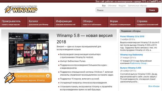 - Бесплатно скачать Винамп последнюю версию для Виндовс 10 можно с официального веб-ресурса разработчика http://ru.winamp.com/ или с нашего сайта.