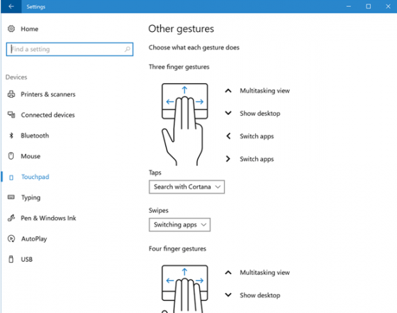 - Работа с тачпадами значительно улучшилась - создатели расширили перечень настроек для девайсов с сенсорным экраном. Теперь пользователь может самостоятельно выбрать определенные жесты для выполнения тех или иных действий. Для планшетных устройств имеется виртуальный тачпад, который является достойной заменой привычной мыши. Для того, чтобы включить его, необходимо нажать на кнопку, расположенную в панели задач. Если вам хочется попробовать его в действии, то следует скачать Windows 10 1703 с нашего веб-сайта.