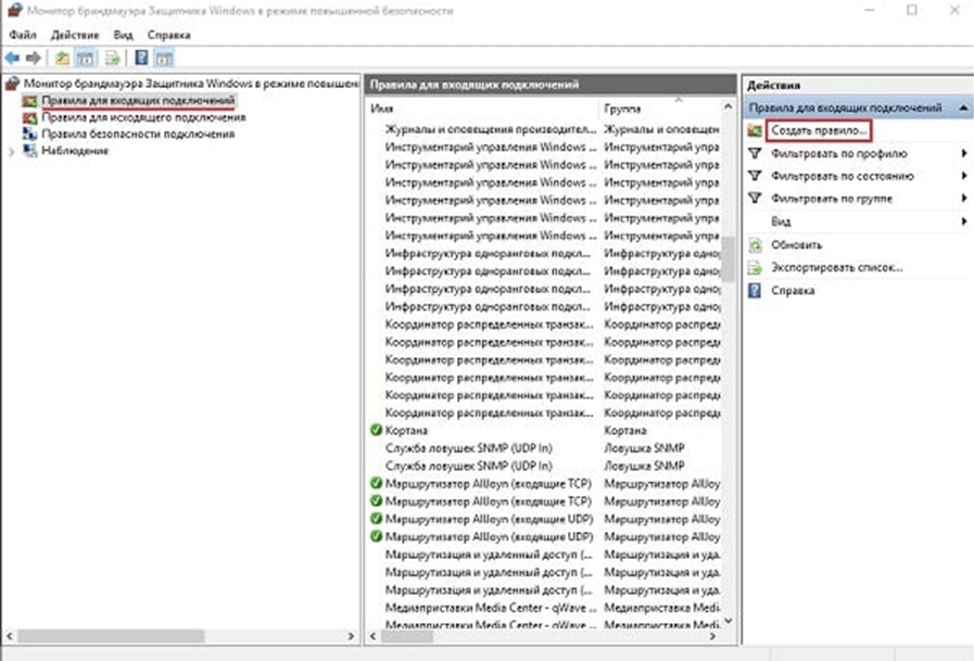 - В поисковой строке на панели задач введите фразу «Монитор брандмауэра».