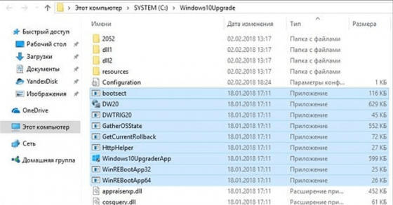 - Установочные файлы имеют расширение «.esd» и загружаются в специальную директорию под названием «Windows10Upgrade» - их суммарный объем не превышает 8 Гб.