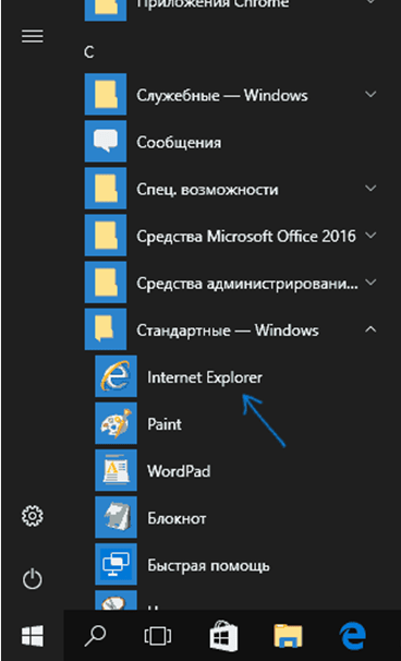 - Откройте меню «Пуск» и найдите папку «Стандартные — Windows». Внутри этого каталога должен находиться ярлык браузера.