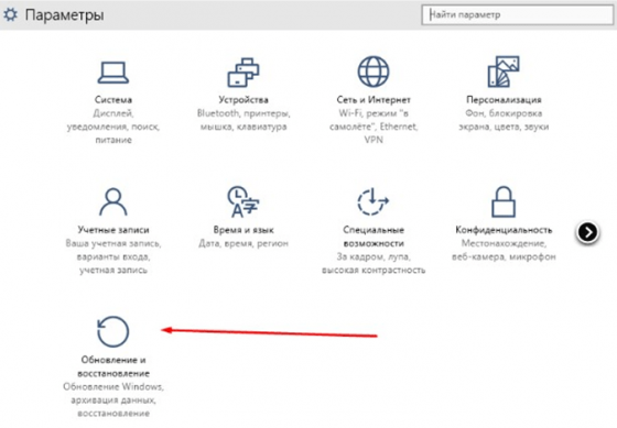 - Если открылось новое окно, то выберите «Обновление и восстановление».