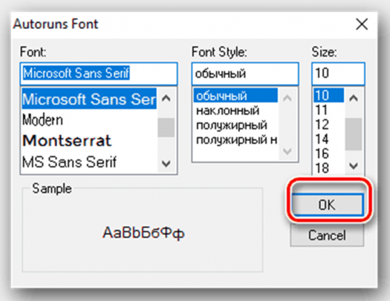 - Кликните на строку «Font» в этом же самом разделе. Здесь можно поэкспериментировать со шрифтом, его размером и стилем, а затем нажать на кнопку ОК.