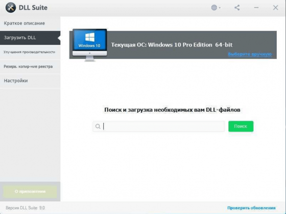 DLLSuite - специальное приложение, призванное устранить проблемы с недостающими системными библиотеками. Данный софт подходит для операционок Windows 7, 10. Программу достаточно установить и запустить, чтобы впоследствии она смогла подобрать нужный файл самой свежей версии. При этом, вам не придется чересчур напрягаться и приглашать опытных профессионалов со стороны. Утилита является полностью бесплатной.