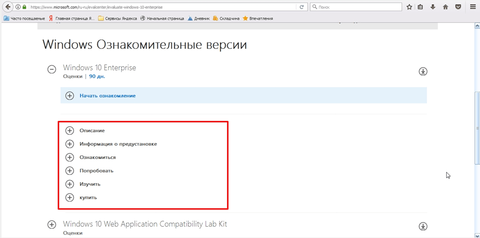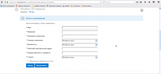 Если хотите установить Виндовс 10 на русском языке бесплатно, то первым делом советуем посетить Evaluation Center от Майкрософт. Для того, чтобы оказаться на официальном веб-ресурсе, рекомендуем кликнуть по этой ссылке https://www.microsoft.com/ru-ru/evalcenter/. Далее ознакомьтесь с подробной инструкцией и выполните пошаговые действия: