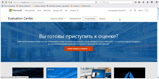 - На главной странице Evaluation Center в верхней половине экрана найдите кнопку "Попробовать" и нажмите на нее.