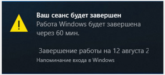 - Если все было сделано правильно, то появится автоматическое уведомление, сообщающее пользователю о том, что текущий сеанс автоматически закончится спустя некоторое время.