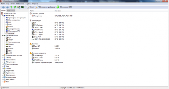 Aida64 — удобный и полезный инструмент, позволяющий контролировать состояние отдельных частей компьютера. Одной из главных функций также является генерация полного отчета по комплектующим системы: модели плат, производитель, диспетчер устройств. Является обновленной версией программы Everest, которую разрабатывал тот же производитель софта — венгерская компания FinalWare.