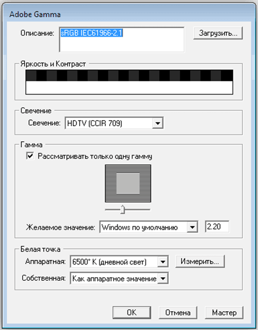 Adobe Gamma — еще один полезный продукт от известного производителя программного обеспечения. Ее нельзя ставить в один ряд с Flash Player или Acrobat, но со своими задачами софт справляется вполне успешно. Но есть одна проблема — поддержка утилиты прекратилась, последняя версия появилась в свободном доступе давно, и с тех пор никаких обновлений не было. Хотя все еще можно скачать бесплатно adobe gamma windows 10, и воспользоваться ее функциональными возможностями. Интерфейс переведен на русский язык, поэтому при использовании утилиты проблемы не возникнут.
