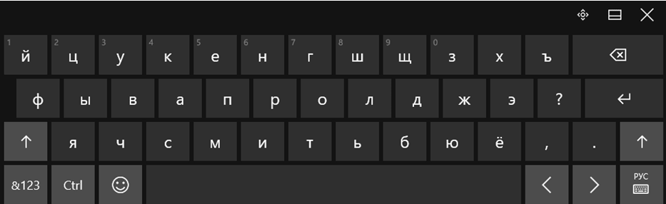 Экранный ввод запускается в виде небольшого окна и развернуть его на всю рабочую область нельзя. Эмулятор полностью копирует возможности стандартного ввода.