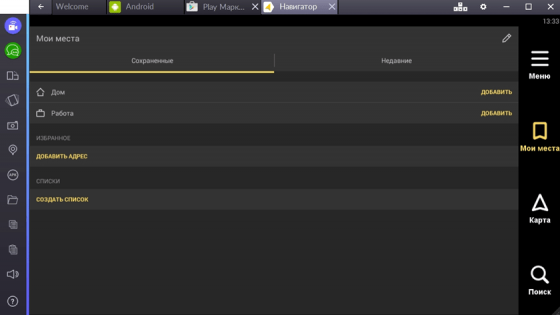- Добавление часто посещаемых мест в отдельное меню с быстрым доступом.