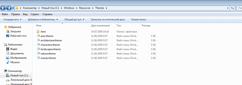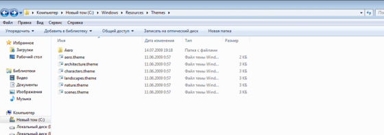 Темы представляют собой целостный файл в формате .theme, который располагается в папке с ресурсами операционной системы. В зависимости от масштаба разработки могут присутствовать дополнительные каталоги и вложенные документы.