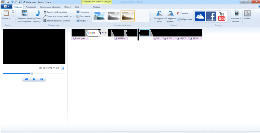 Каждый слайд можно настроить как угодно — добавить титры, вставить произвольный текс или написать обращение к зрителям. Ролик разбивается на удобные элементы, которые размещаются в горизонтальной проекции и можно легко масштабировать их. Скачать виндовс муви мейкер однозначно стоит, если программа не находится в списке установленных и панели «Пуск».