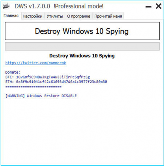 | check | Официальный дистрибутив Destroy Windows 10 Spying | check | |||