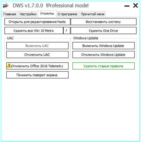 В основных программах Office 2016 работает агент телеметрии — компонент, который собирает информацию об авторах, используемых инструментах, версиях файлов и т.д. Вы можете легко закрыть доступ к этим сведениям, нужно лишь скачать dws и запустить профессиональный режим.