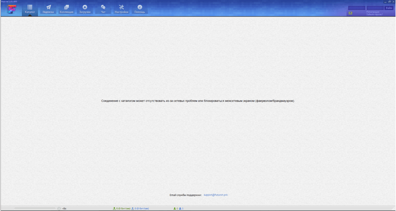 Сразу стоит отметить, что скачать бесплатно Футурон от Дом.ру и пользоваться им смогут только абоненты этого провайдера и клиенты InterZet. Другим пользователям доступ к возможностям закрыт, а при запуске софта появится ошибка соединения с каталогом. Отключение антивируса и брандмауэра не принесет результата. Это главный минус утилиты наряду с мелкими буквами.