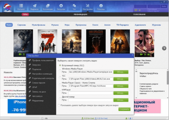 - Удобная библиотека коллекций, где будут надежно храниться все любимые сериалы или музыка.