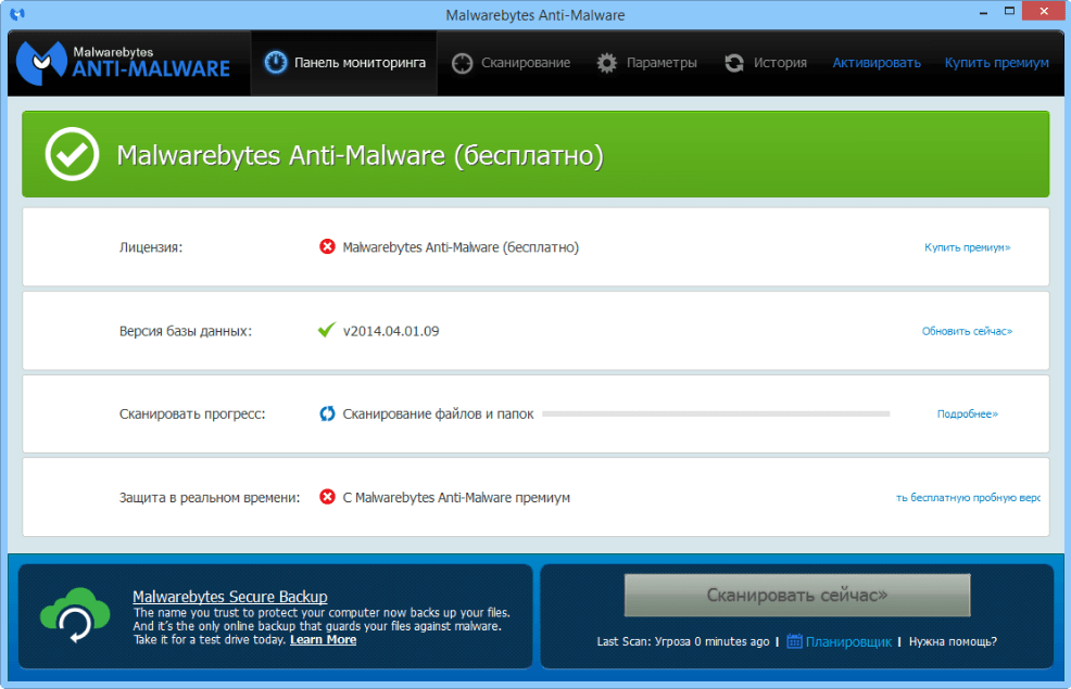 Malwarebytes Anti-Malware представляет собой высококачественную антивирусную улиту, которая обеспечивает полноценную и высоконадёжную защиту ПК от различного рода вирусов и вредоносного программного обеспечения. Программа имеет приятный интерфейс и большое количество полезных инструментов, которые также имеются и в других антивирусах, таких как Microsoft Security Essentials и 360 Internet Security 2018.