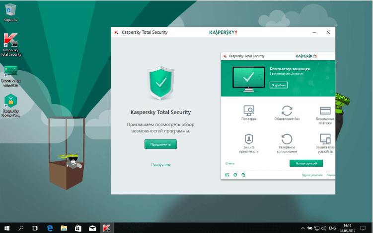 Для полноценной завиты операционной системы Windows пользователи получают следующие возможности при использовании Kaspersky Total Security: