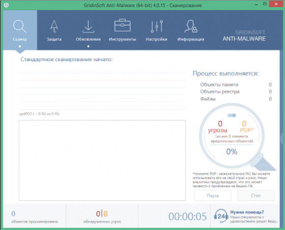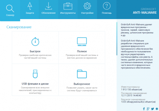 Основное преимущество утилиты GridinSoft Anti-Malware заключает в том, что она регулярно в автоматическом режиме обновляется, следовательно, даже самые новые вирусы будут тут же обнаружены. Продукт имеет следующие возможности: