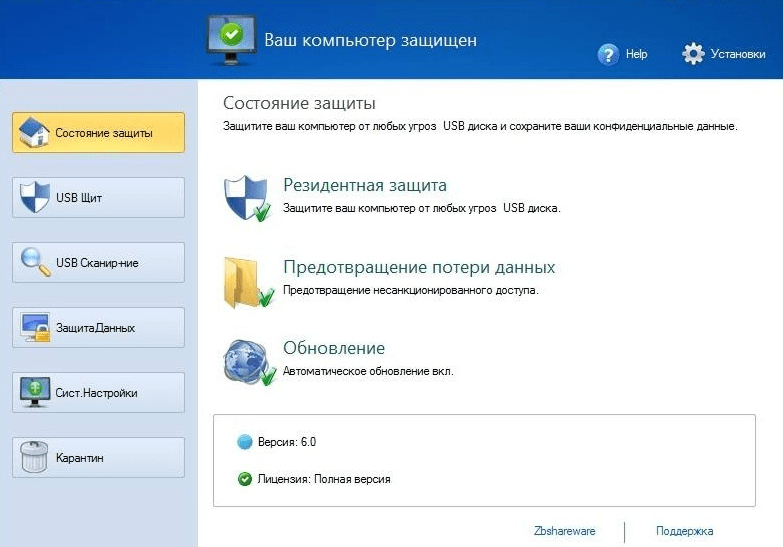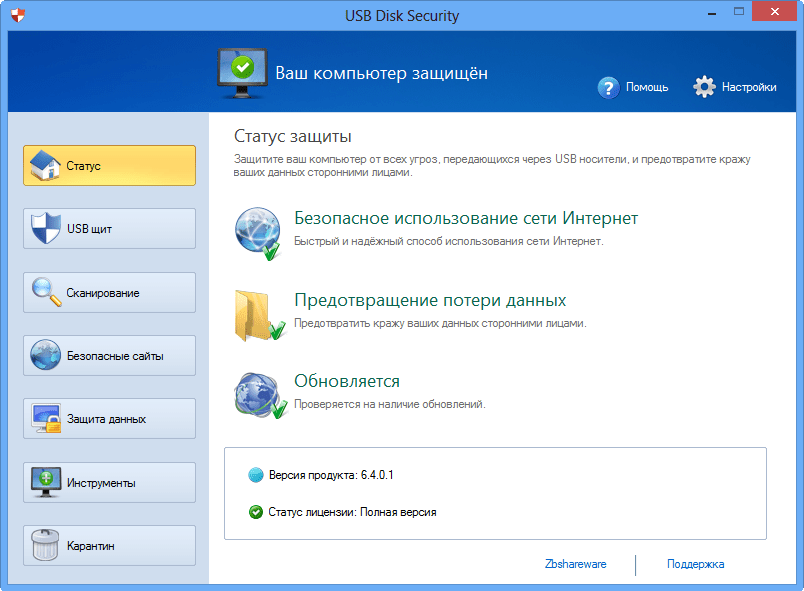 USB Disk Security – это утилита, предназначенная для удаления всевозможных вирусов, которые могут попасть на персональный компьютер пользователя через съёмные носители, такие как USB-накопители, внешние жёсткие диски, а также карты памяти. Программа занимает минимум места, не влияет на работу других приложений, не требовательна к системным ресурсам, но при этом является довольно мощным инструментом для обнаружения вирусных угроз. Разработчиком данного продукта выступает компания Zbshareware Lab.