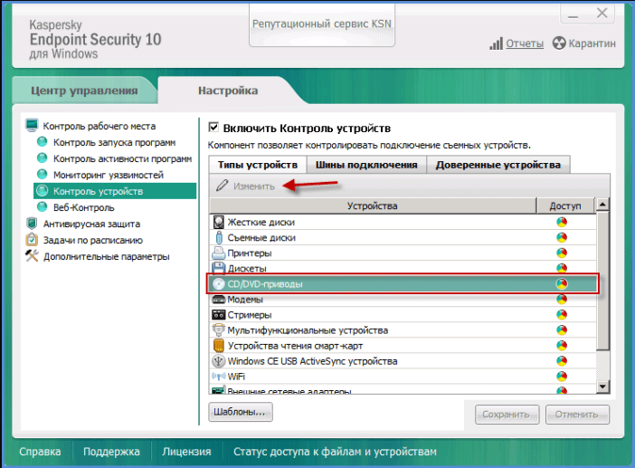 - Контроль устройств – компонент используется для настройки доступа к устройствам, с помощью которых можно хранить, а также получать или передавать информацию.