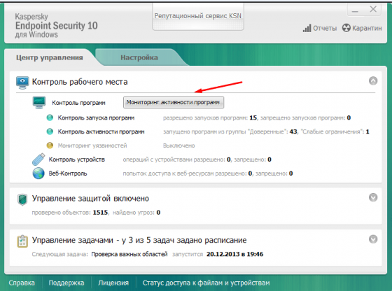 - Контроль программ – осуществляется контроль над запуском и работой различного программного обеспечения на ПК.