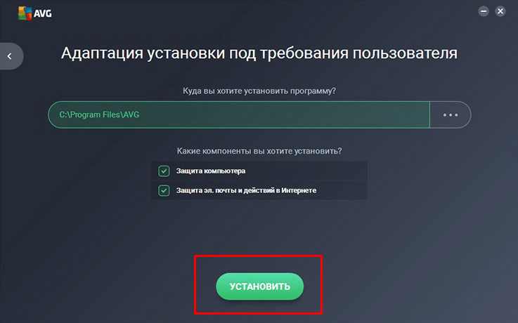 - В следующем окошке выбираем путь инсталляции продукта, остальное оставляем по умолчанию и нажимаем на кнопку «Установить».