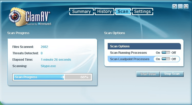 Продукт отличается простой и быстрой установкой. Чтобы просканировать компьютер, необходимо вручную запускать ClamAV, поскольку антивирус не работает в автоматическом режиме. Его можно использовать на различных операционных системах, таких Windows, Linux и macOS. Программа предоставляет следующие возможности: