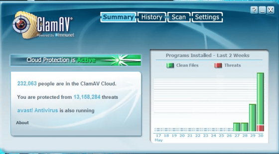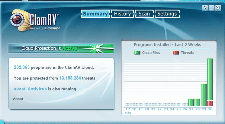 ClamAV – это антивирус, который используется в основном для защиты электронной почты, а также персонального компьютера от вирусов, шпионских приложений и вредоносного программного обеспечения, способного изменять важные компоненты операционной системы. Продукт от компании Cisco Systems может обнаружить с помощью нескольких механизмов опасные компоненты разных видов, а также безвозвратно удалить их. Софт встраивается в Windows Explorer, а также в Microsoft Outlook, что обеспечивает максимальную защиту и удобство в использовании.