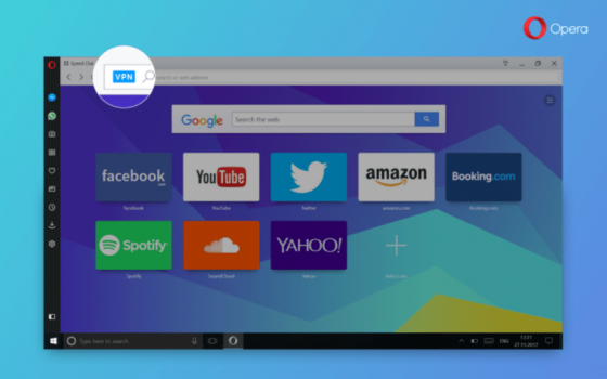 - Встроенный VPN позволяет посещать заблокированные сайты.