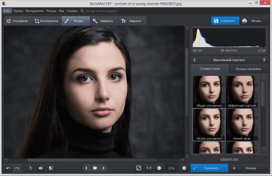 Фотомастер – это простой, но очень удобный и многофункциональный софт, предназначенный для качественного редактирования и улучшения фотографий. В большей степени программа рассчитана на любителей, поскольку, несмотря на множество полезных и мощных инструментов, всё же имеет недостаточно возможностей для профессиональной обработки фото. Также предлагаем вам для сравнения ознакомиться с утилитой PixBuilder Studio, которая предоставляет подобные возможности и славится своей стабильностью.