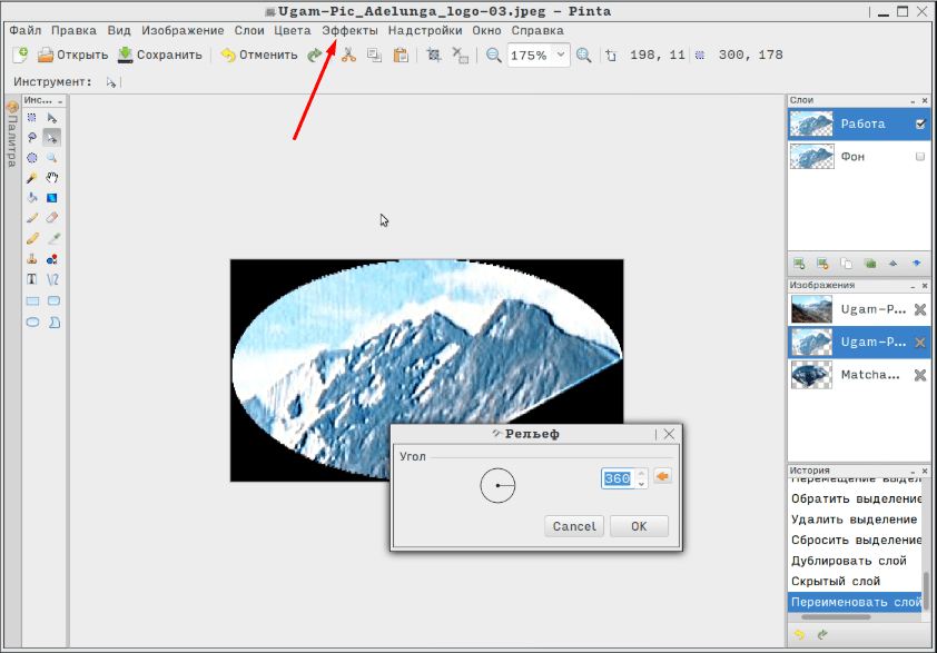 - Применение эффектов, которых насчитывается более 30 штук (рельеф, барельеф, карандашный набросок, свечение, набросок чернилами и т.д.).