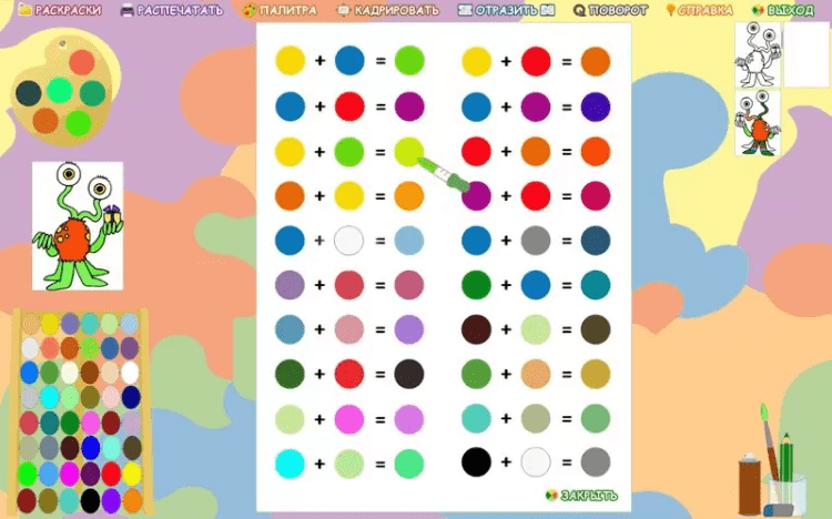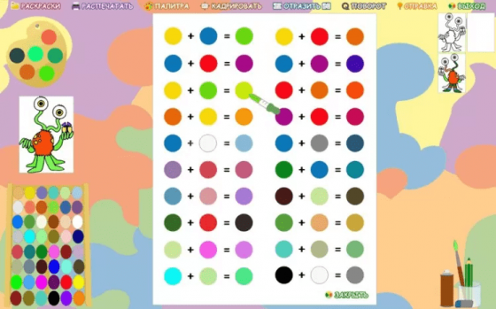 Вы всегда сможете сохранить на персональный компьютер, а затем распечатать изображение, созданное вашим малышом или вами. Раскраска для детей – это яркая красочная программа, которая научит детей разбираться в цветах, правильно их смешивать и просто проводить время с пользой. На нашем сайте вы сможете найти много других полезных приложений, которые так же можно использовать для рисования или раскрашивания объектов любой сложности, например Pinta или Paint.NET.