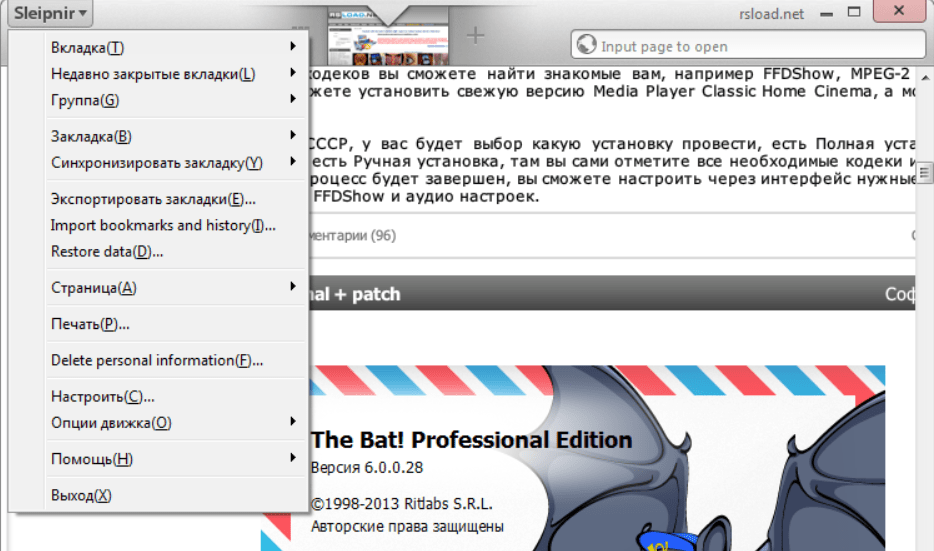 Утилита конечно не так популярна, как именитые обозреватели (Internet Explorer 7 или Opera GX), однако она так же удобна и проста в использовании, более того, программа распространяется бесплатно. Устанавливается Sleipnir довольно быстро и имеет немало достоинств: