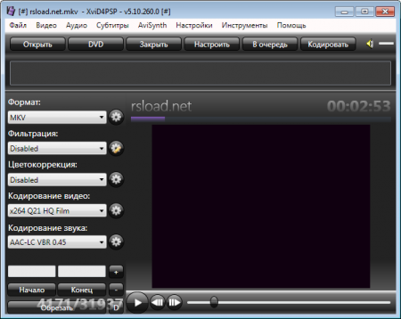 XviD4PSP обладает наглядным меню, легко настраивается посредством установки готовых пресетов.